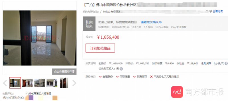 据罗先生介绍,去年12月15日,他在京东司法拍卖网站缴纳了16.8万元的保证金,以185万元的价格拍下广州市海珠区人民法院发布的一套佛山顺德的房产标的。他告诉记者,当时拍卖页面详情里并未备注房屋未办理产权证。为此,罗先生当天就拨打了拍卖页面上的咨询电话。在罗先生提供的一份电话录音中,他询问该房屋是否办理有不动产权证,对方回应称“就是上面写的那个证号码,不是预售”,并表示如果房屋为预售房,会写在公示信息中。