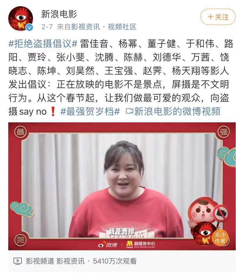 春节前夕,多位艺人呼吁拒绝盗摄