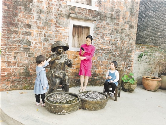 石板沙随处可看到和黄沙蚬有关的景观小品和雕塑,趣味十足。