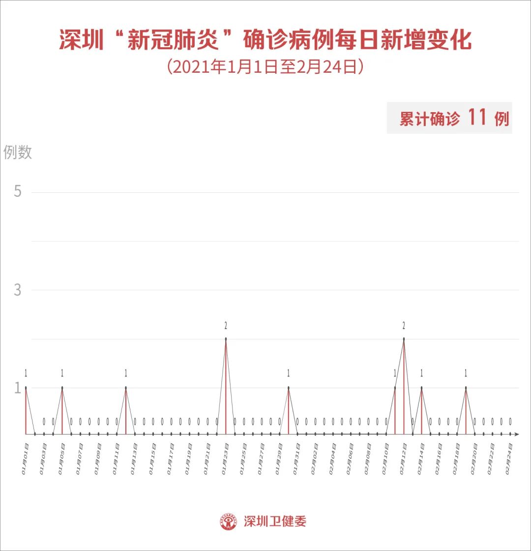2月24日0-24时,深圳无新增确诊病例,无新增无症状感染者。