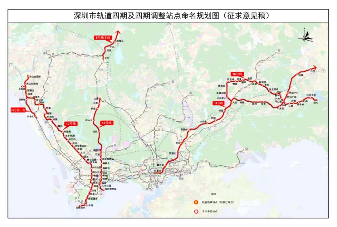 深圳市轨道四期及四期调整站点命名规划图(征求意见稿)