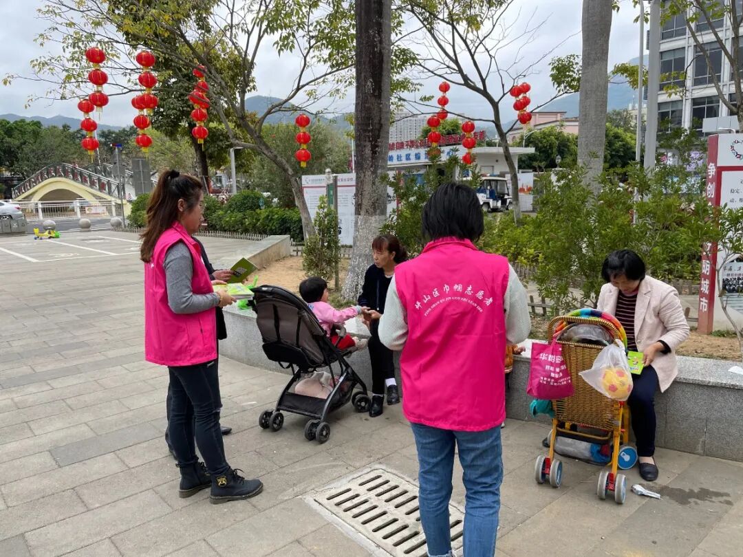 碧岭、汤坑社区生活垃圾巾帼志愿服务队近日组织队员在社区广场、公园进行垃圾分类宣传。妇女群众是垃圾分类宣传的志愿军,也是垃圾分类实践的主力军。队员们将宣传手册发至妈妈们手上,耐心讲解垃圾分类知识。一名队员说“下午的碧岭广场阳光总是很明媚,妈妈们喜欢带小朋友到广场晒太阳,我们觉得这是很好的宣传机会。通过妈妈们这一宣传口,垃圾分类更能有效地走进家家户户。”