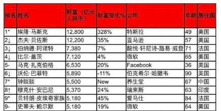 特斯拉的埃隆·马斯克财富比去年增加近万亿元人民币,达到1.28万亿元,首次成为世界首富