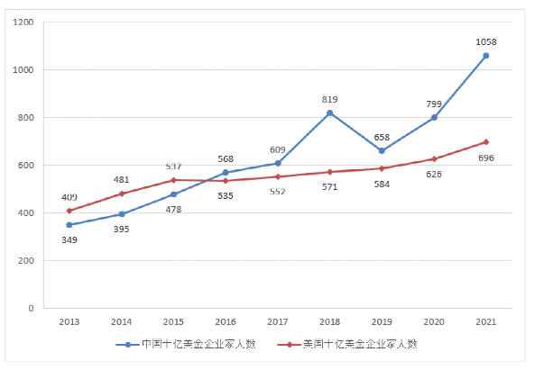 中国以1058位十亿美元企业家领先于美国,增加259位,而美国有696位,增加70位