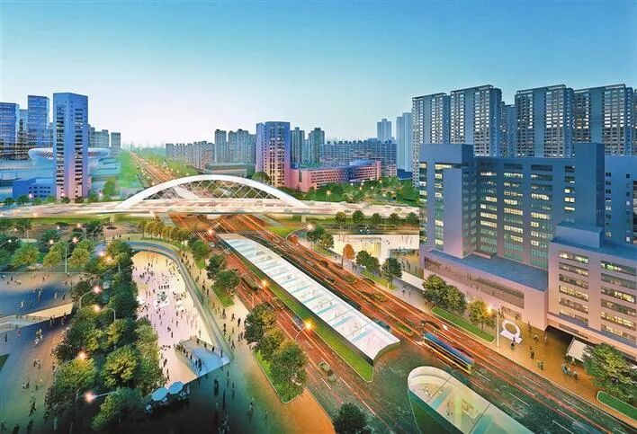 黄木岗综合交通枢纽还将实现站城一体、都市再生。结合城市更新,以“一核、五轴、多点”的规划理念,以轨道交通为核心,通过五个轴带有效连接体育中心、市二医院、华富村、华强北商业街、笔架山公园、中心公园等多个区域,形成集多种功能为一体的综合型城市地下空间新典范。