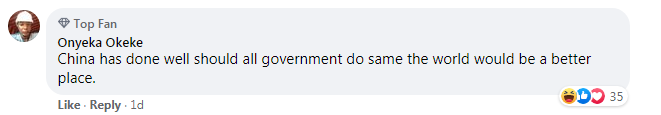 “中国做得很好,如果各国政府都能这么做,世界将会变得更好。”一位尼日利亚网友说。