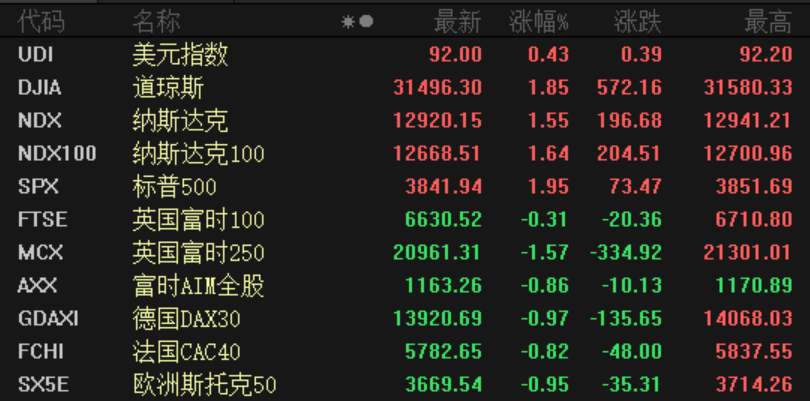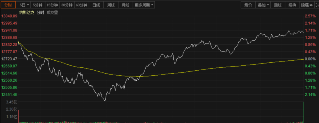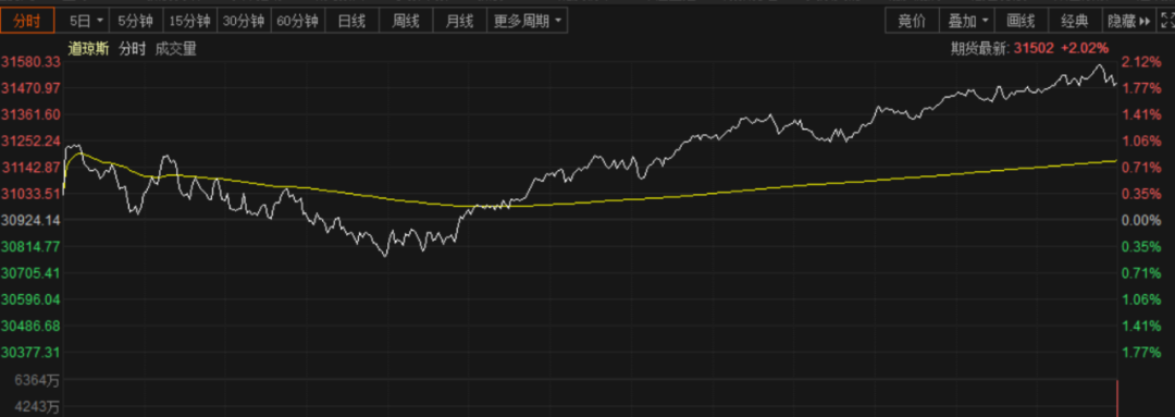 周五,美股上演大逆转,道指涨超570点或1.86%,实现800点大逆转;纳指亦录得500点大逆转,盘中最多曾下挫超过320点。标普500指数涨1.95%。