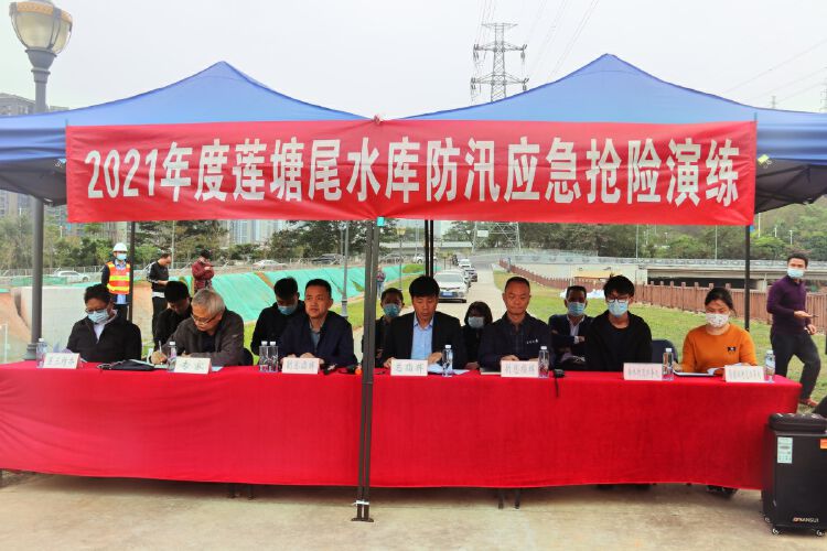 3月5日下午,福田区水务局联合福田区应急管理局、梅林街道办事处、香蜜湖街道办事处、市水务(集团)有限公司福田分公司举行莲塘尾水库2021年度防汛应急抢险演练。
