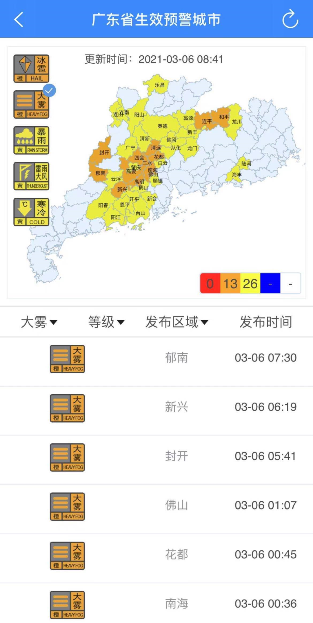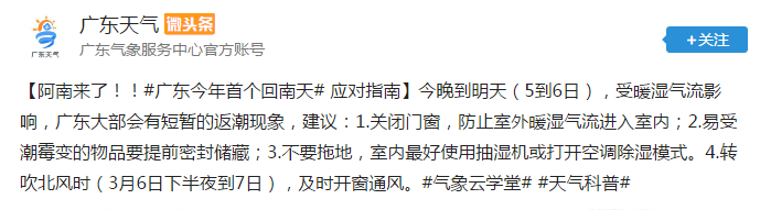 明天(7日),降水减弱。全省大部分公路交通运输受雾影响,粤北和粤东交通受降雨影响,雨雾天气请注意交通安全。