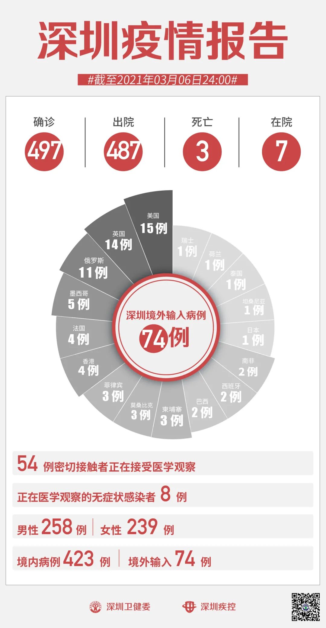 截至3月6日24时,深圳市累计报告新冠肺炎确诊病例497例。
