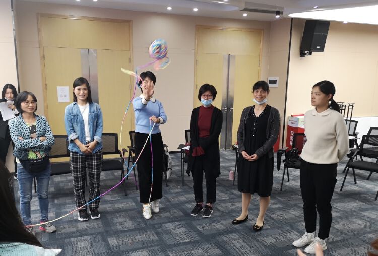 本次活动的主讲老师陈怡鸿为国家注册二级心理咨询师、正面管教美国认证导师。活动一开始,主讲老师让大家用A4纸撕成一件衣服,逐位自我介绍,并分享属于自己的小秘密与爱好,迅速拉近了家长们的距离。随后,陈老师以“爱的流动”、“最想听的一句话”等热身小游戏寓教于乐,让大家感受到生活中既要付出也要得到回报与尊重。