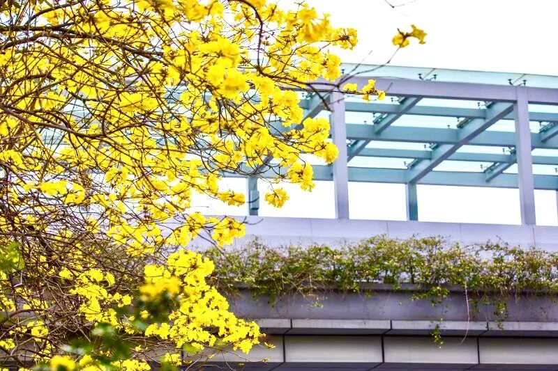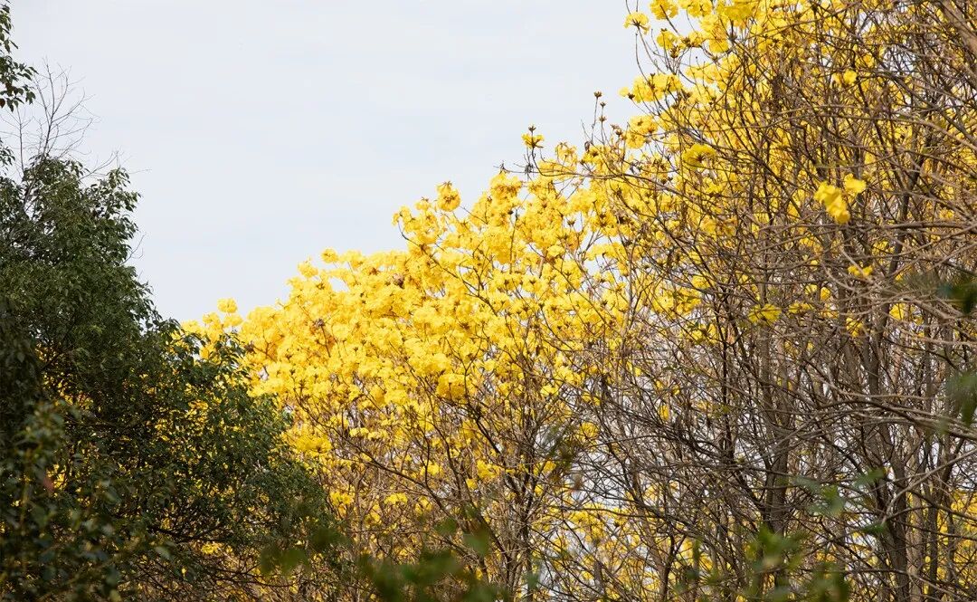 这种黄色的花叫黄花风铃木,别名:毛风铃、毛黄钟花、黄金风铃木。最佳赏花期就在这段时间,遇上了别犹豫,赶紧掏出手机拍个够~