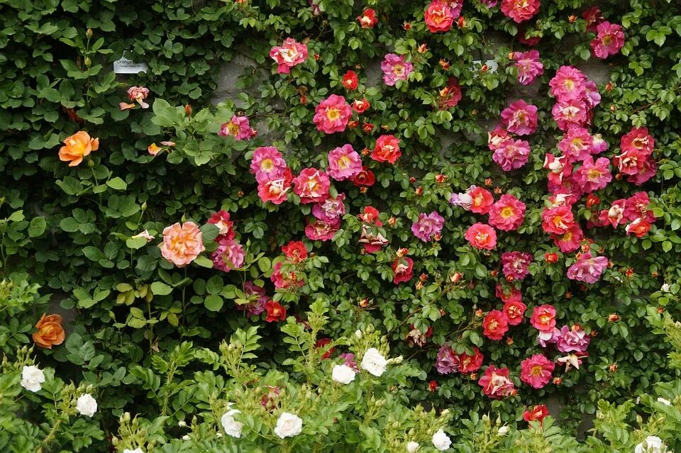 三月的春光下,各色月季竞相开放,绚丽多彩,婀娜生姿。
