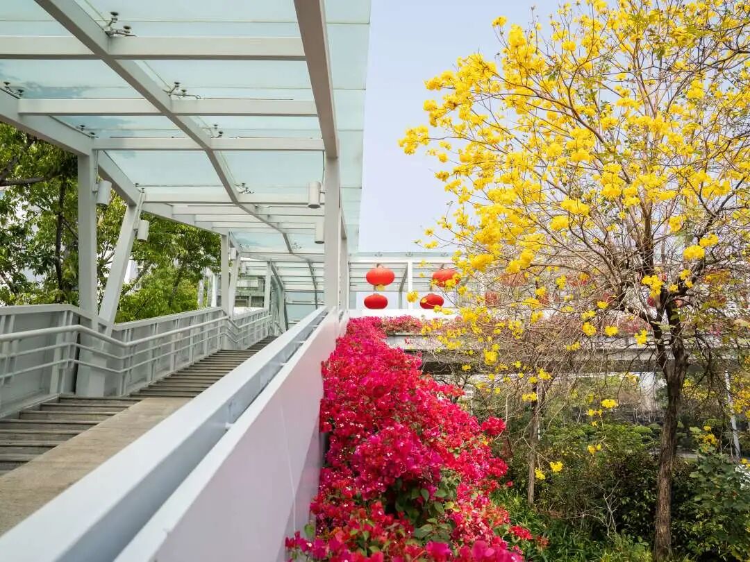 当红色的簕杜鹃与灿烂的黄金风铃木撞个满怀,仿佛整个世界都被它们点亮,毫不低调~