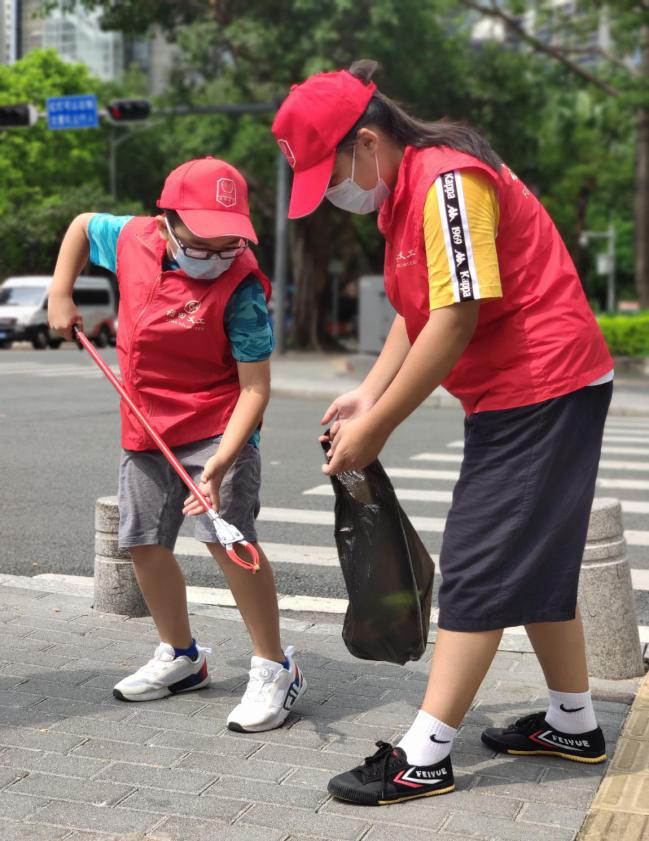 “小手拉大手”小志愿者在清洁环境、文明劝导