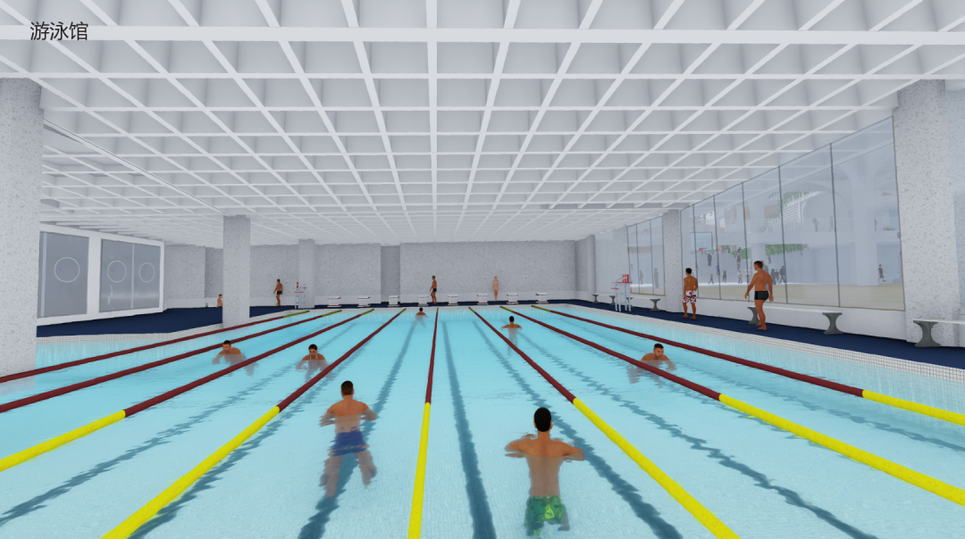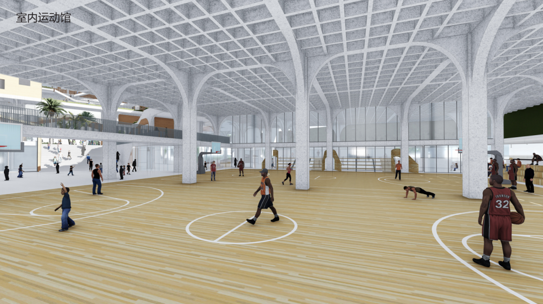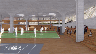 将图书馆、游泳馆、报告厅、风雨操场、食堂、专业教室等布置在临近地面的首层与地下一层不仅最大限度地利用校园的内向空间增加师生之间的互动与自由流动还有利于将这些公用设施与社区共享形成更便捷的管理