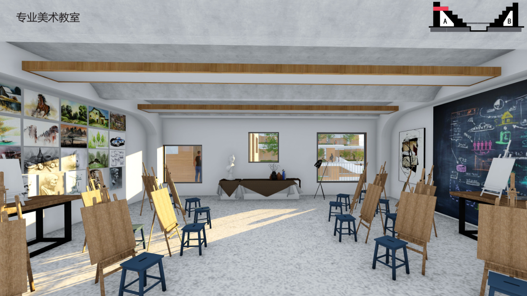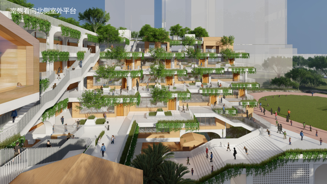 利用层层退台式结构形成“山地模式”串联起二层、首层、负一层的活力公共空间打造“垂直+水平”的活力公共空间体每层楼都配备开放式楼梯方便学生和老师到达各层