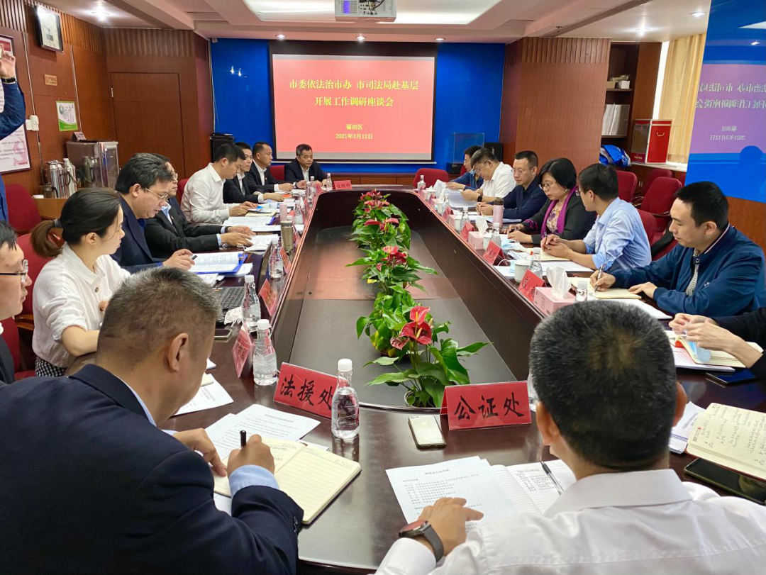 市委依法治市办秘书处、法治调研督察处,市司法局普法和依法治理处、行政执法监督处、网信办负责人及福田区司法局分管领导、各科室负责人参加了调研。