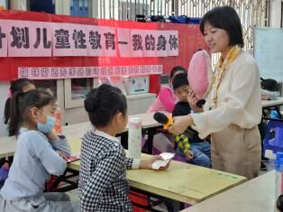 “你们觉得男女生的最大区别是什么?”。“男生短发女生长发、女生穿裙子、男女生的生殖器不一样”参与者纷纷说出自己的答案。根据参与者的回答,老师运用理论加道具展示的方式介绍了隐私部位的名称和生殖器的构造及其功能,“你们觉得隐私部位可以随便漏出来吗?可以让人随便摸吗?可以随便看吗?”参与者都摇头表示不可以。“穿泳衣的部位是不能让别人随便摸的,在看医生时要有家长陪同,如果别人的某种触碰行为让你感到不适,你都可以说NO”。