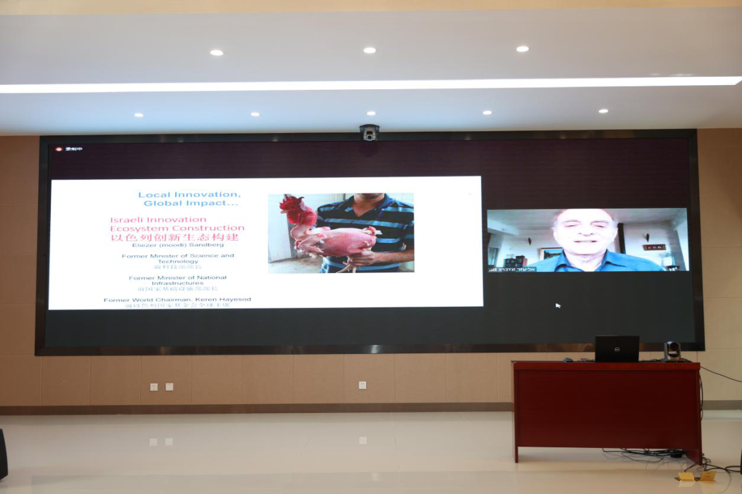 揭幕式后,首场讲座邀请到了以色列前科技部部长、前国家基础设施部部长、前以色列国家基金会全球主席穆迪·赞伯格,通过线上直播的形式讲授“以色列创新生态系统构建”,同时由交传翻译人员同步为现场学员提供翻译。穆迪·赞伯格通过网络电话、生物技术、滴灌技术、3D打印等创新案例分享了以色列各领域的创新经验,让现场学员大开眼界、饱受启发。课后还设置答疑环节,穆迪·赞伯格与现场学员跨越语言障碍进行热情交流,让他们的知识和视野在一次次智慧的碰撞中得到提升。
