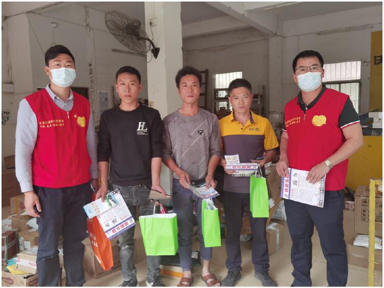 近日,同乐社区党委领导走访社区各快递服务站点,为快递小哥送上防疫口罩、消毒液、杀菌湿纸巾等防疫物资,感谢他们为辖区经济的发展辛勤奉献,嘱咐他们在疫情防控期间时刻牢记安全第一,加强自我防范和保护,遵守行业安全法规与交通规则,确保自身安全,以更好的状态为国家、为社会作出更大的贡献。
