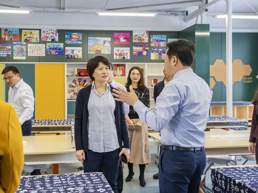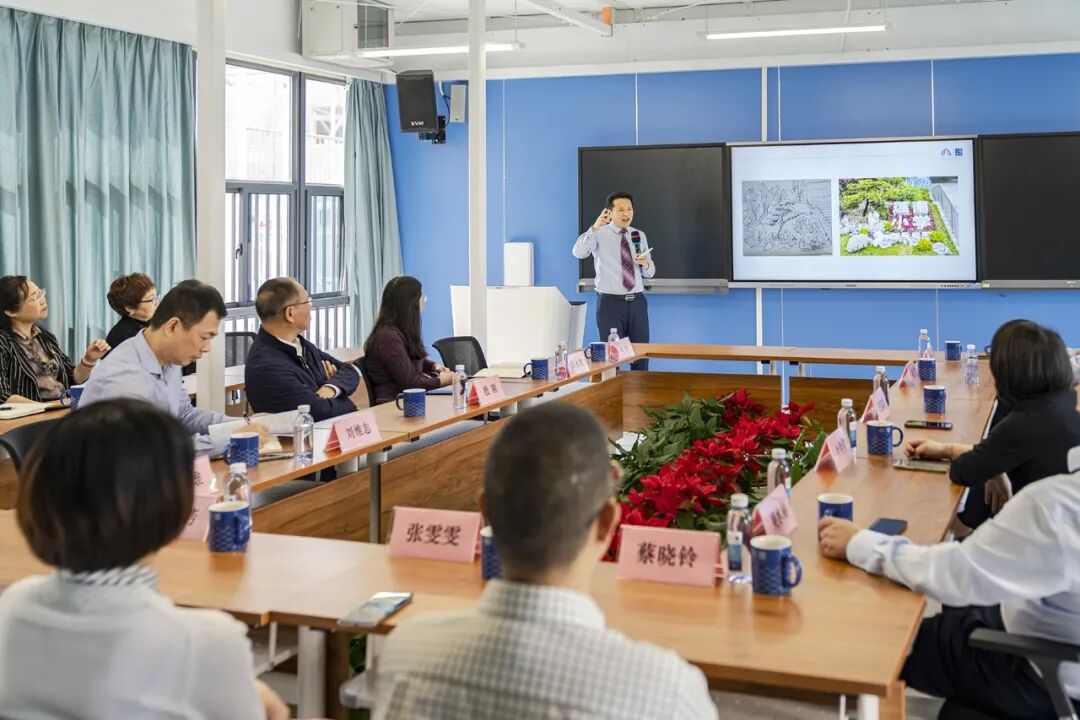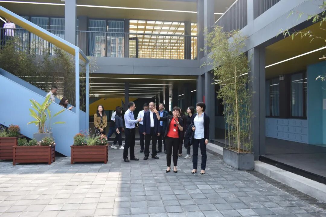 走在色彩碰撞、极具艺术感的走廊,考察团成员不忘拿起手机拍下所关注的地方,并不断地询问该校区在建设期间的细节情况。