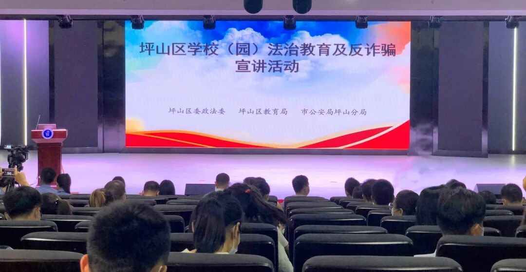 为进一步增强全区学校、幼儿园教职员工的法律意识,维护广大师生、家长的合法权益,3月18日下午,坪山区教育局联合区委政法委和市公安局坪山分局,开展了“坪山区学校(园)法治教育及反诈骗宣讲活动”。此次活动在坪山区第二外国语学校设置主会场,各公民办中小学、幼儿园教职员工各设分会场通过视频参会。