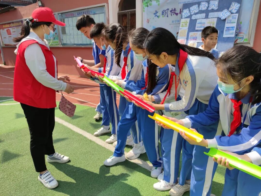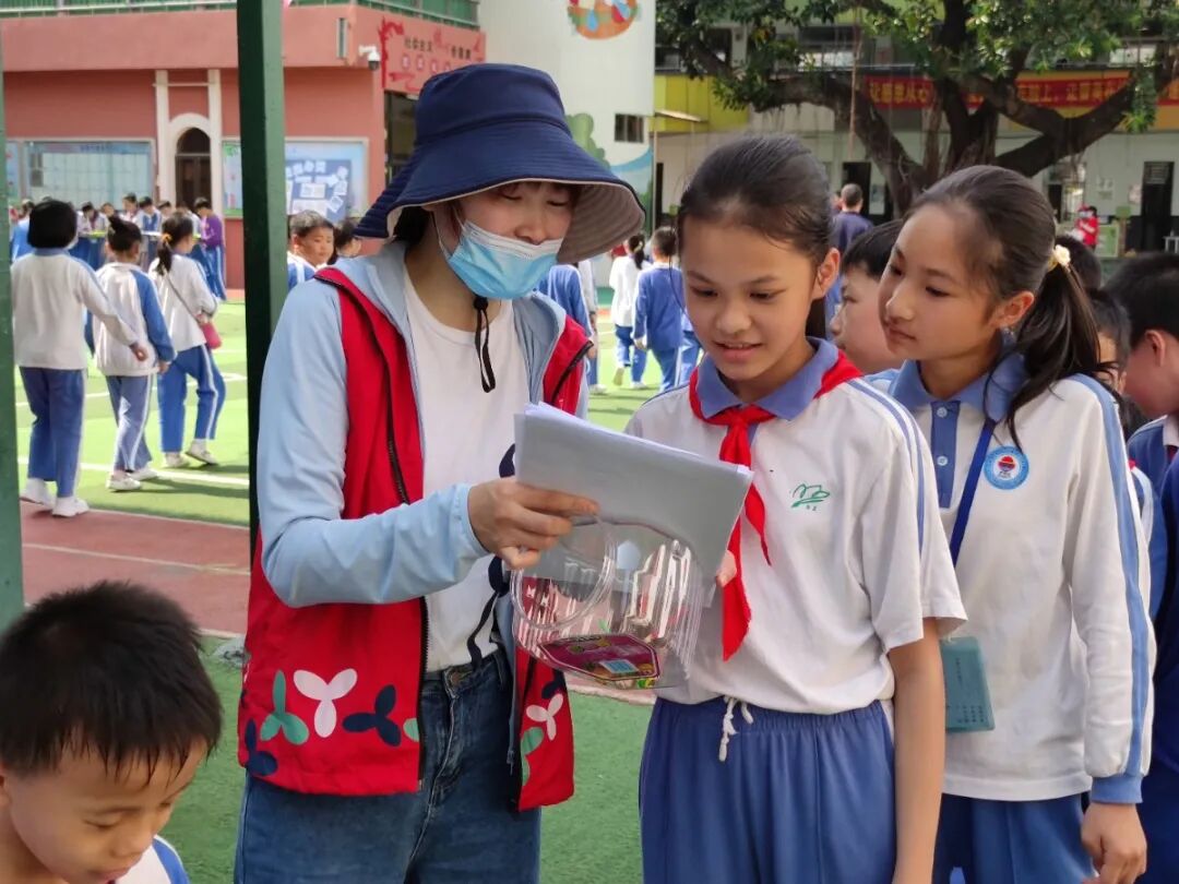 一问一答一起学习心理健康知识。“圆圆圈圈”环节中,工作人员引导学生投圈进行问答,让大家从简单的心理问答环节中了解到与心理相关的知识,如“小学生常见心理困扰的表现”、“遇到问题该向谁求助”、“伙伴关系”、“写作业拖延”等等,孩子们踊跃参与作答,学习到了许多有趣切合实际的心理健康知识。