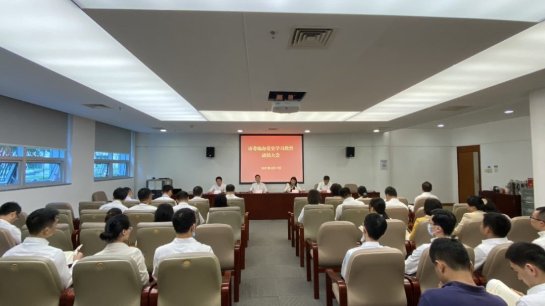 为深入贯彻习近平总书记在党史教育动员大会上的重要讲话精神,不折不扣落实党中央和省委、市委关于党史学习教育部署要求,市委编办严格对标对表、创新谋划安排,高标准召开动员大会,并讲好第一堂党课,要求全办党员牢牢把握学党史、悟思想、办实事、开新局主题主线,坚持个人自学和集中学习相结合、规定动作和自选动作相结合,着重突出政治引领、突出为民情怀、突出高质量发展,以实际举措推动党史学习教育往深里走、实里走,努力把学习成效转化为工作实效,在更高起点上推动机构编制工作创新发展,着力打造“让党中央放心、让人民群众满意”的模范机关,为“十四五”工作开好局、起好步,为深圳先行示范贡献力量,以优异成绩庆祝中国共产党成立100周年。
