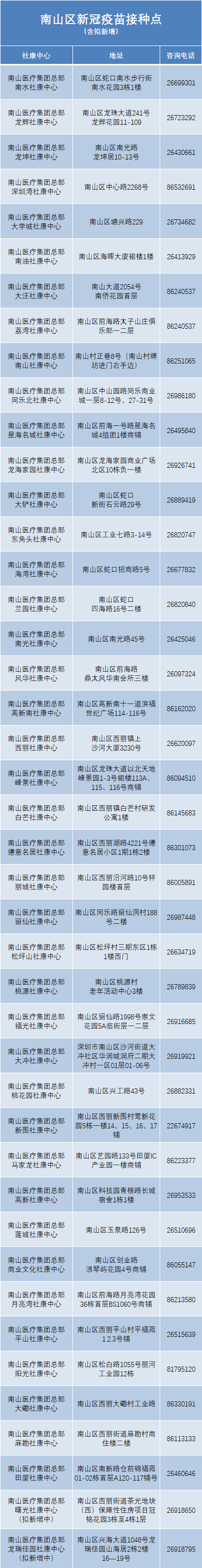 (原题为《不限户籍全民免费!南山43个新冠疫苗接种点出炉!》)