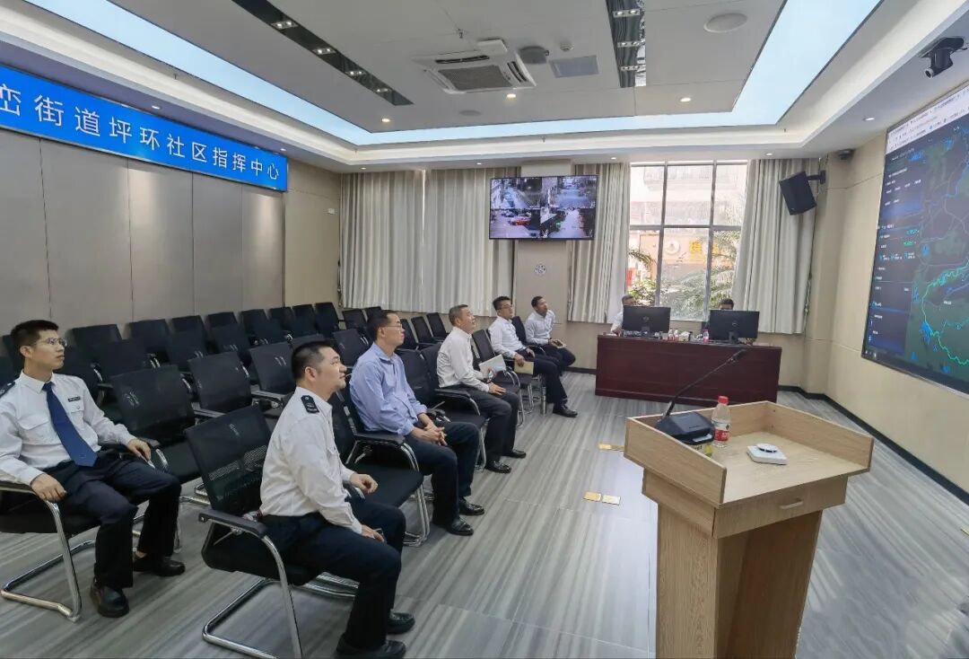 随后,在坪环社区社会治理综合服务中心和指挥中心,工作人员介绍了坪环社区红外烟感平台。该平台通过在辖区餐厅、酒店等主要场所安装电子监控设备,实时采集控烟传感设备数据,在烟雾浓度超标时发出警报,通过手机APP向执法人员推送地理位置,执法人员可就近进行执法。