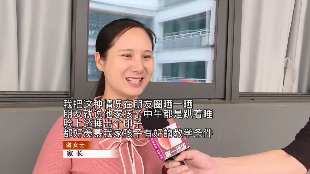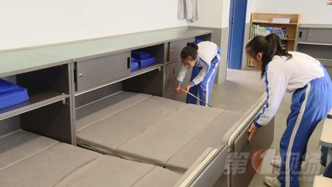 下午两点前,同学们起床收拾,迅速把床收起座椅拉开,教室又恢复了原样。家长谢女士说,以前中午孩子只能趴桌睡,不但手会麻,孩子其实也休息不好,这让她很操心。