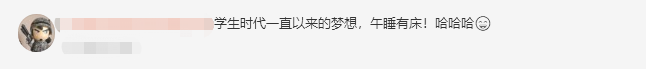 现在有了午休床之后,孩子经常说 妈妈我今天中午睡着了,也觉得很开心很兴奋,孩子下午上课也会精神一些,不会打瞌睡。