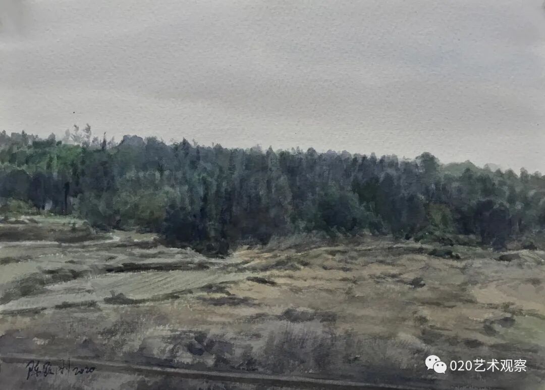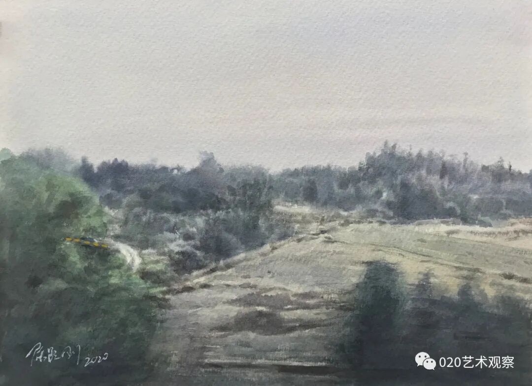 《流动的风景之一》纸本水彩 26×36cm 2020年