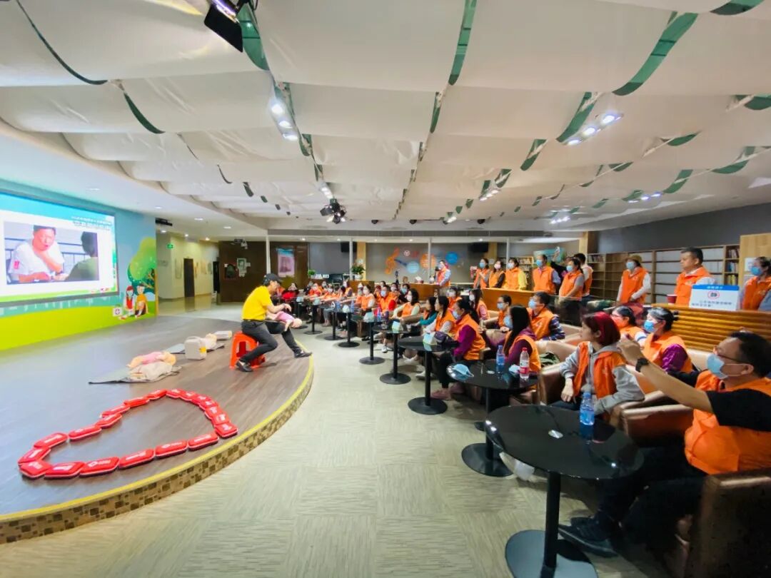 所以我们邀请到了深圳市“白金十分钟急救公益科普”宣讲师方平进行授课,来自福田区文化馆各直属分馆、街道分馆及社区约150名文化志愿者参与了此次培训。
