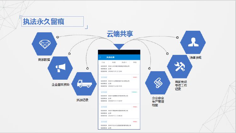 为提升执法效率,平台创新采用人脸识别技术、直连公安部CTID可信身份认证实时认证机制,有效破解了执法人员和执法对象身份合法性难题,通过主体身份认证功能,推进了企业主体责任落实。