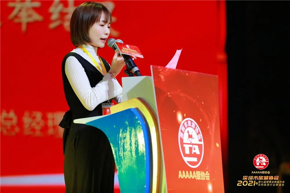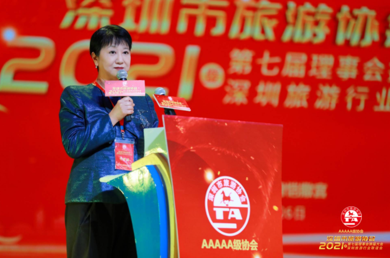 随后,深圳市文化广电旅游体育局副局长杨永群作重要讲话。杨永群代表市文化广电旅游体育局向以刘平春同志为会长的市旅游协会第七届理事会,为深圳旅游业发展付出的辛勤劳动表示衷心的感谢。她表示,2021年是中国共产党成立一百周年,是实施十四五规划开启全面建设社会主义现代化国家新征程的第一年。作为朝阳产业的旅游行业有着广阔的发展前景。一方面,党中央先后作出了建设“粤港澳大湾区”和“中国特色社会主义先行示范区”的重大战略部署,习近平总书记亲自向世界宣布支持深圳实施综合改革试点,为深圳以及深圳旅游业未来的发展创造了重大的历史机遇。另一方面,进入新的发展阶段,我国将全面进入大众旅游阶段,满足人民对美好生活的向往,需要旅游行业提供更加丰富的、更高质量的旅游产品和服务。