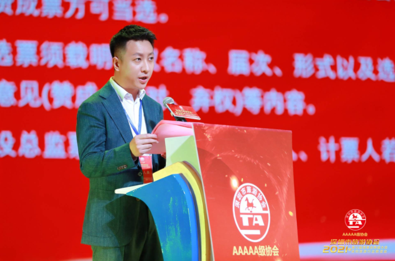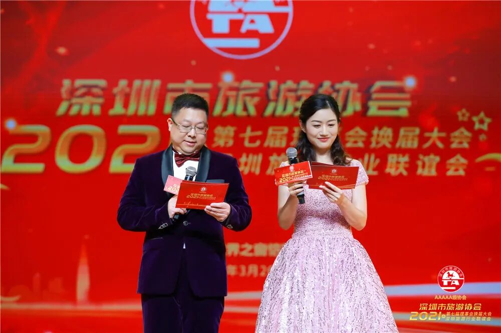 2021年3月26日,深圳市旅游协会第七届理事会换届大会暨2021年深圳旅游行业联谊会在深圳世界之窗恺撒宫举行,深圳市文化广电旅游体育局党组书记、局长曾相莱、党组成员、副局长杨永群,共青团深圳市委员会副书记袁志雄,深圳市社会组织联合党委、深圳市生活服务类行业协会联合党委、各区旅游行政部门相关领导、各兄弟行业协会、媒体代表及深圳市旅游协会会员单位近500人出席了会议。