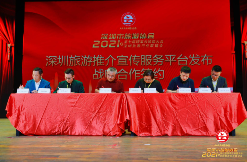 作为粤港澳大湾区发展的核心引擎,深圳已经成为了国内外旅游机构和商家关注的焦点。为加大向游客展示深圳城市旅游形象、旅游资源、旅游产品和城市文化的力度,提升深圳旅游的整体宣传影响力、行业影响力,为旅游企业提供更多宣传渠道。深圳市旅游协会联合深圳广电移动频道乐游生活、腾讯大粤网、百年教育等单位共同搭建“深圳旅游推介宣传服务平台”,大会上市旅游协会副会长胡旦、岳峰、邹锋分别与百年教育、乐游生活、腾讯大粤网签订战略合作协议,携手为城市旅游推介及各旅游企业提供“线上传播+ 线下宣传+活动统筹”的一站式资源方案,打造深圳旅游全矩阵宣传服务平台。