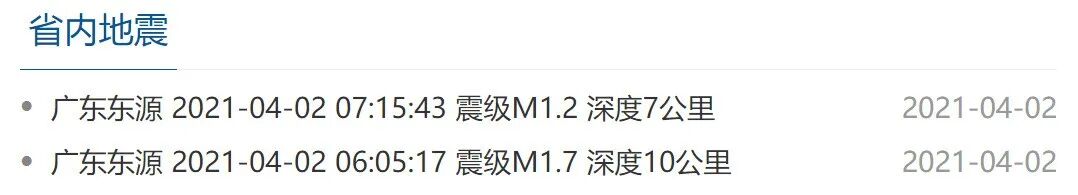 而且,今早6时05分、7时15分广东东源再次发生M1.7级、M1.2级地震。