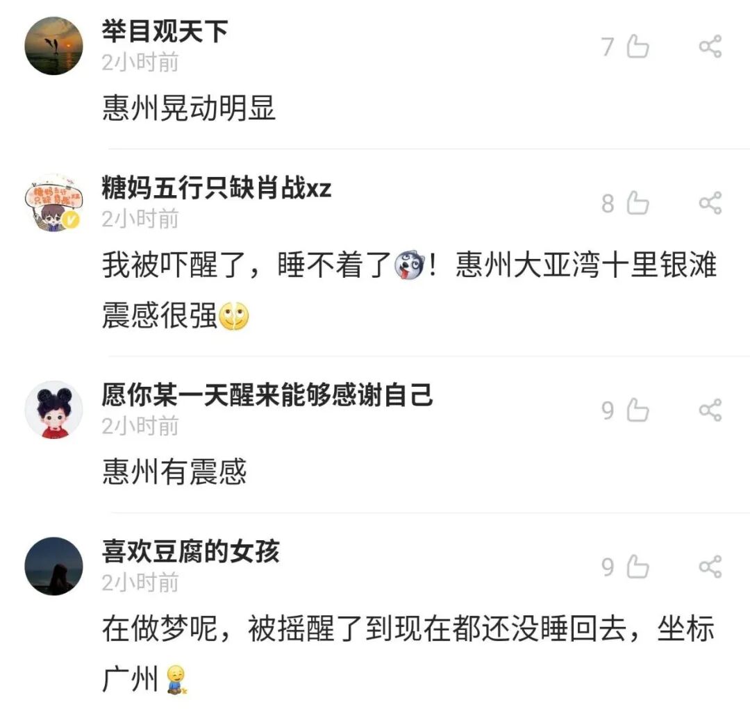 深圳、惠州、汕尾、东莞、广州等多地网友表示:有震感
