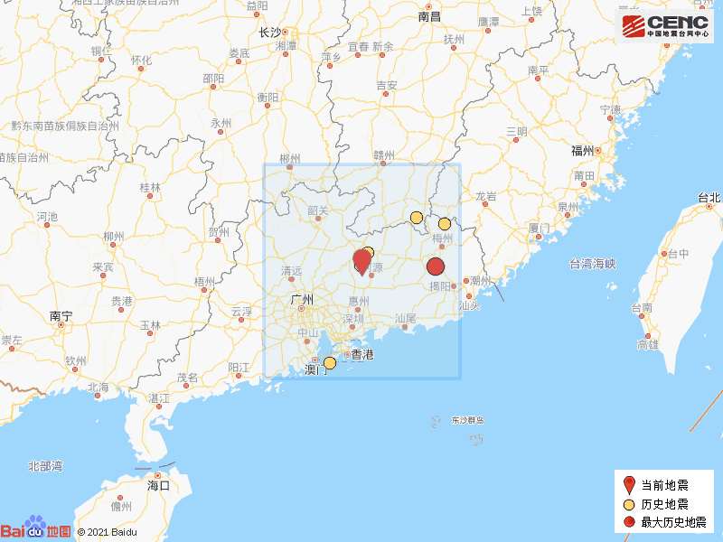 这不是该地第一次发生地震。根据中国地震台网速报目录,震中周边200公里内近5年来发生3级以上地震共9次,最大地震分别是2021年4月2日在广东河源市东源县发生的3.7级地震(距离本次震中0公里)和2020年1月20日在广东梅州市兴宁市发生的3.7级地震(距离本次震中154公里)。