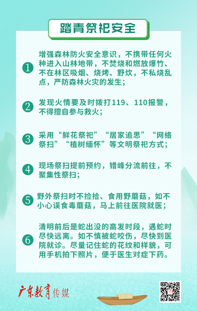 清明假期,安全教育不可忽视,为了让孩子度过一个安全有序、文明健康、低碳环保的清明节,请老师、家长收好下面这份安全指南,向孩子强调各类安全注意事项。