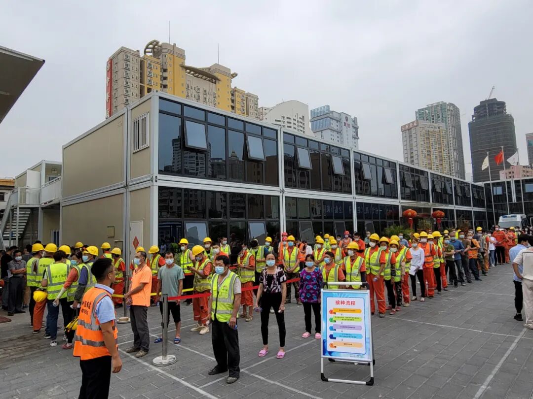 为了保证《紧急通知》落实落细,区住房建设局还组织专车接送工人们,开展集中接种。该局在与建筑工地确认接种人数、接种时间等信息后,积极协调区卫生健康局、沙头街道办事处等有关部门,安排车辆到工地接送,实现点对点一站式服务,在福田体育公园进行集中接种。
