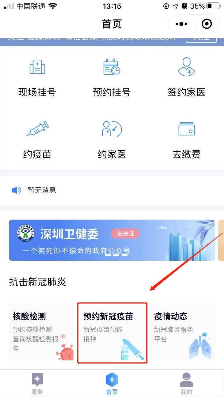 ② 在【首页】点击【预约新冠疫苗】即可预约。