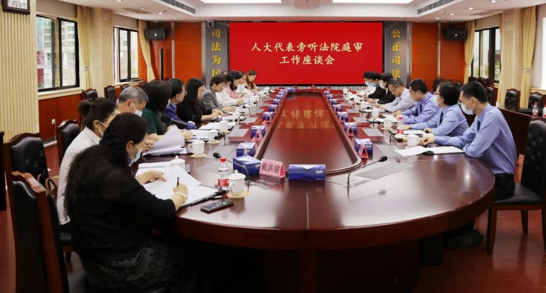 庭审结束后,福田法院召开了人大代表旁听法院庭审工作座谈会。福田法院党组书记、院长詹旭伟,福田检察院党组成员、副检察长邱华红,福田法院审判委员会专职委员陈肖娟及相关工作人员参加会议。