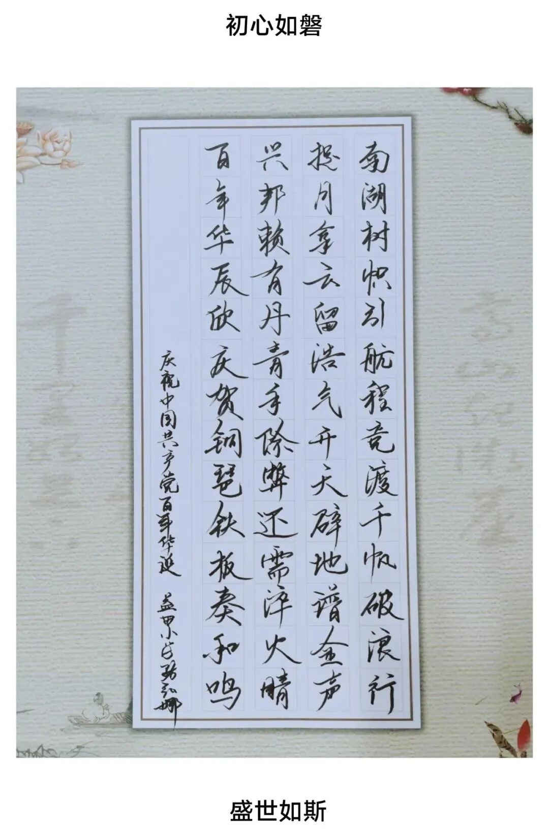 益田小学党支部的党员教师们纷纷拿起笔表达心声。一首《七律·南湖颂》抒发了党员对中国共产党“百年征程波澜壮阔,百年初心历久弥坚”的千秋伟业的赞颂;一幅《藏区春色》弘扬了“绿水青山就是金山银山”的治国理念,表达对祖国山河锦绣、国泰民安的祝福。