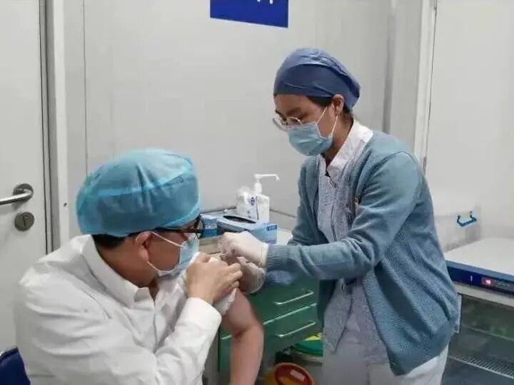 ▲张文宏接受第二剂新冠疫苗注射。(图片来源:华山医院)