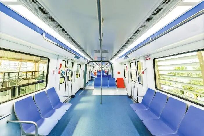 巴伊亚云轨车辆符合当地规范、契合当地需求。车辆采用流线型设计,兼具设计美感与降低风阻;大规格车门,配合无障碍进出设计,无论行走、坐轮椅、推婴儿车都可以舒适出行;车厢连接处无阻隔,通透性好,侧面配备大车窗,景观性好;使用空气弹簧悬架系统确保了车辆行驶静谧、平稳。另外,车辆搭载了领先的全自动无人驾驶系统及智能乘客服务系统,实现列车高度自动化,可以按照最优模式提供更精准的运营控制,可靠性更高、安全性更好,提升运营效率、保障准点率;同时车载PIS、CCTV、紧急对讲等系统实时服务乘客,确保安全便捷的乘车体验。车辆后期也可以根据实际运力需求进行灵活编组。