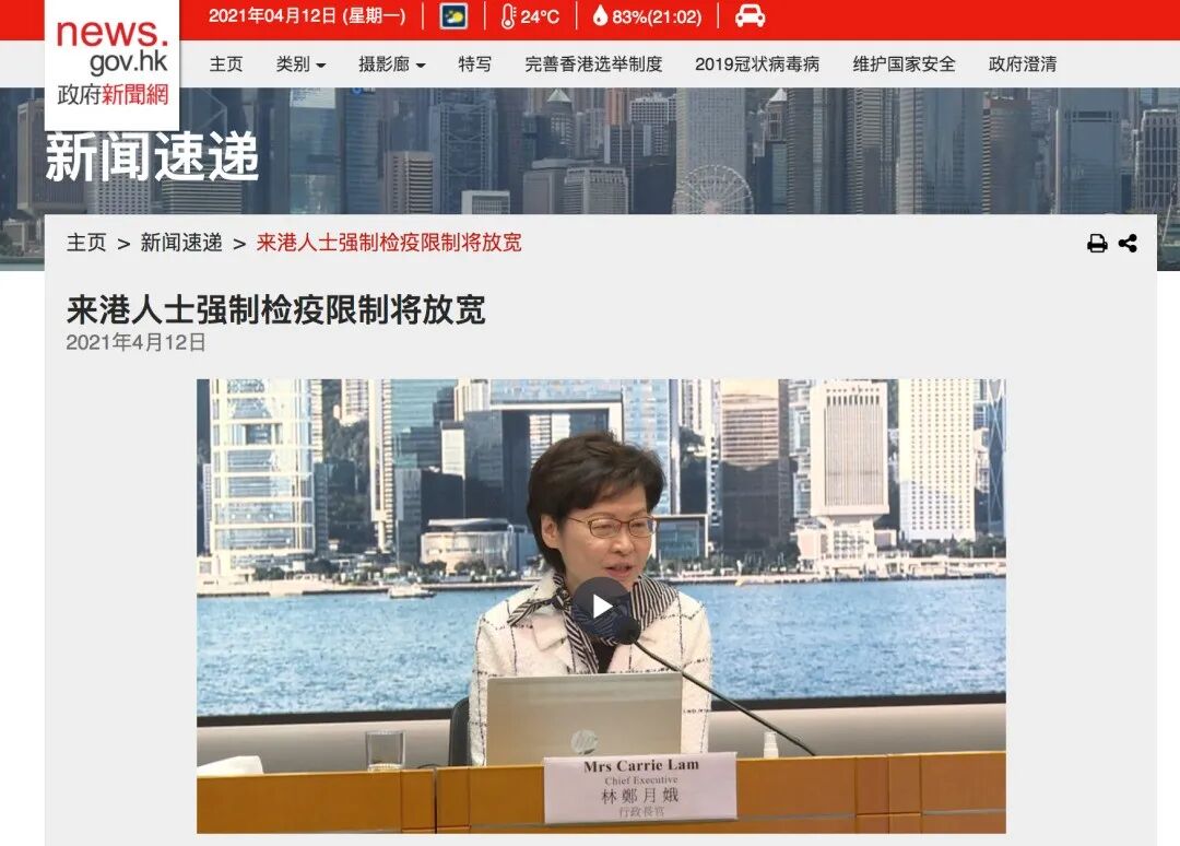 林郑月娥今日在记者会上表示,从低风险地区如新加坡、澳洲和新西兰抵港的人士,若已完成接种两剂新冠疫苗并等候14天,政府会进一步将强制检疫期由目前14天减至七天或以下。